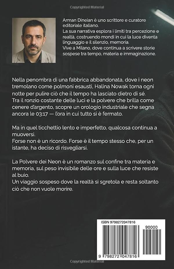 In una fabbrica abbandonata, dove i neon ronzano come polmoni artificiali e la polvere d’argento ricopre ogni superficie, Halina Nowak torna ogni notte per prendersi cura di ciò che il tempo ha lasciato indietro. È un lavoro solitario, fatto di gesti ripetuti e silenzi che diventano compagni di turno.